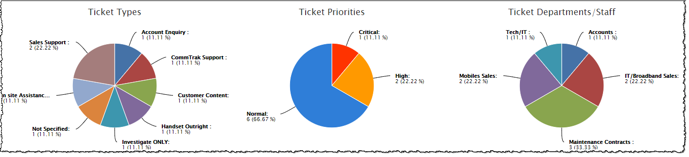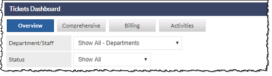 - Filter By Department: Selecting a department displays an overview of ticket information for that department only