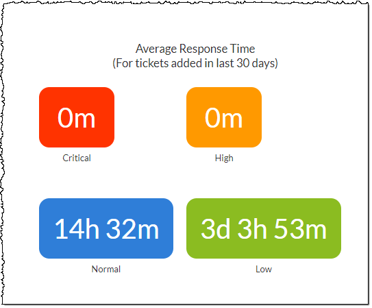 A ticket response time is the duration from a ticket being created, to the first ticket response being added to the ticket.