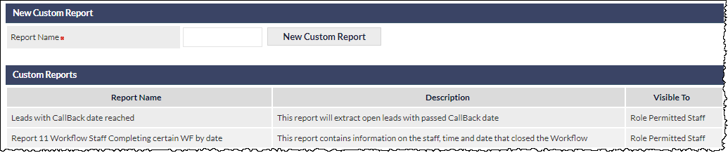 Custom Reports can only be created and modified by CommTrak users with Supervisor role, and staff with a custom staff role that has the Reports > Allow users to manage custom reports permission.