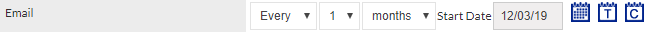 - Every - When selected, the report will be emailed at the stated frequency, starting on the specified date: