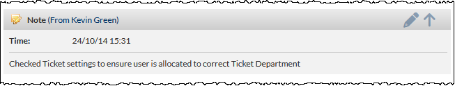 - Press the Add button to add the New Note details to the Ticket, and update the other fields (e.g. Status) in the New Note section, as appropriate.