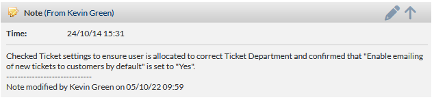 When the modified note is saved, details of the date / time and user who edited the note is appended: