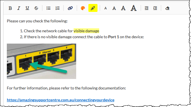 Images can be pasted into the ticket note. We strongly recommend ensuring that images are compressed, to reduce storage requirements, and to reduce the size of the email sent to the recipient.