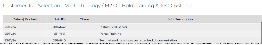 A summary of current and previous Jobs. The fields displayed are: