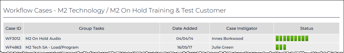 A summary of Workflows for the customer. The fields displayed are: