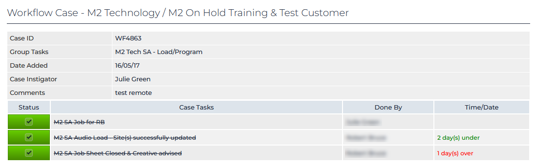 - Status (coloured status indicators for each task in the workflow)