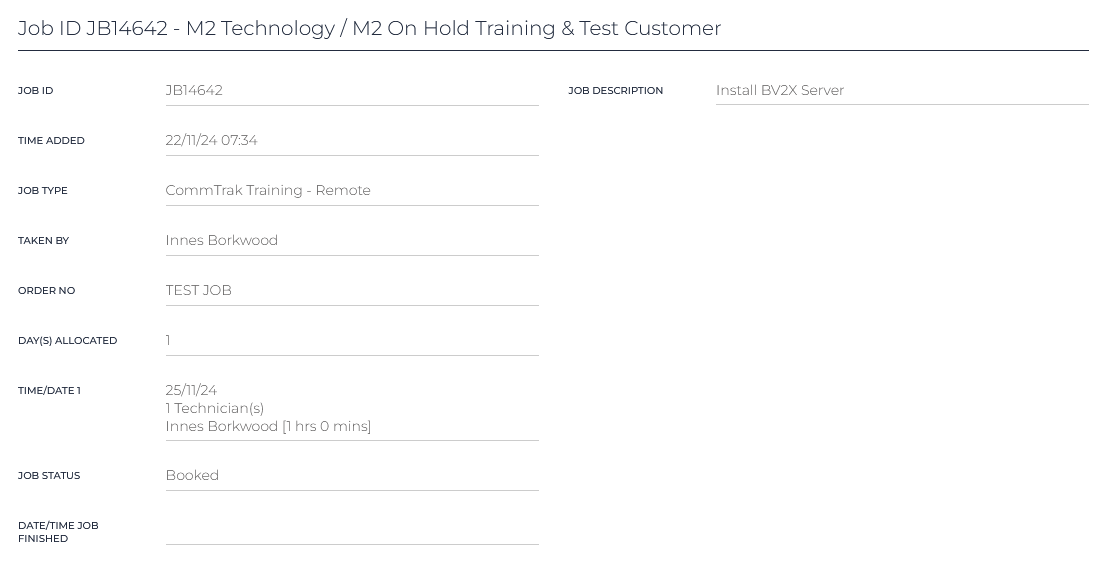 Clicking on a job row in the summary list, displays the following job details: