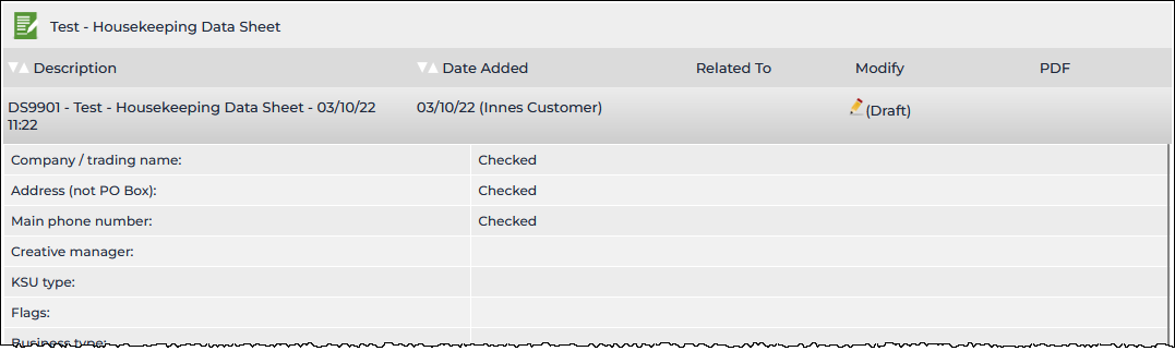 If the Data Sheet has not been locked, clicking the pencil icon (visible in the previous image) displays the data sheet form for editing: