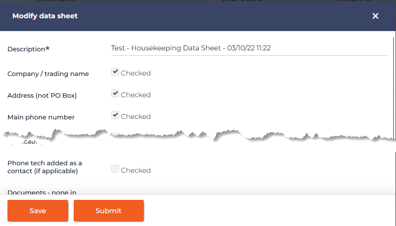 If the data sheet has an associated HTML template, the data sheet will be displayed in a separate pop-out browser window, and can be edited, saved or submitted.
