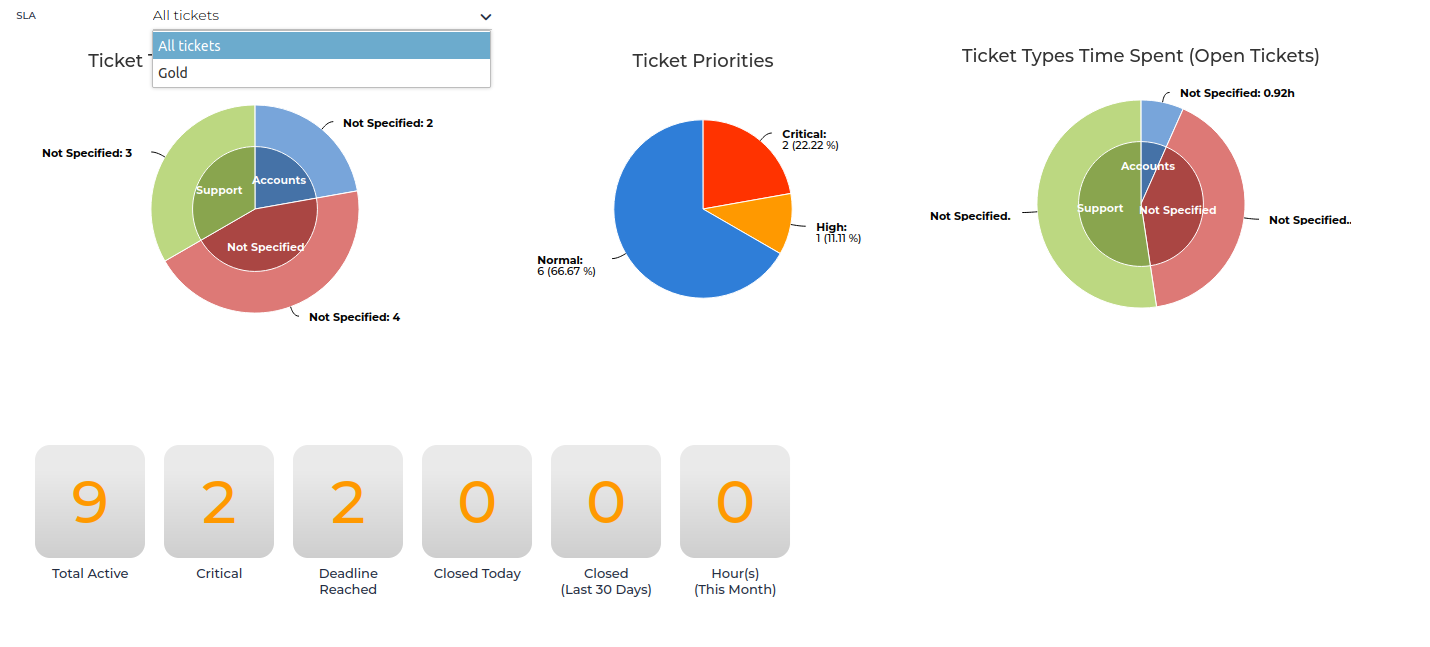 - View a graphical Ticket Dashboard (globally disabled by default; must be enabled in the Portal Module settings)