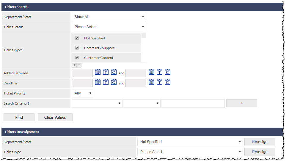 - The Active Tickets screen now displays a comprehensive search section with additional criteria.