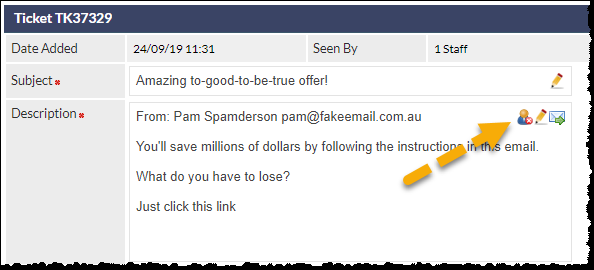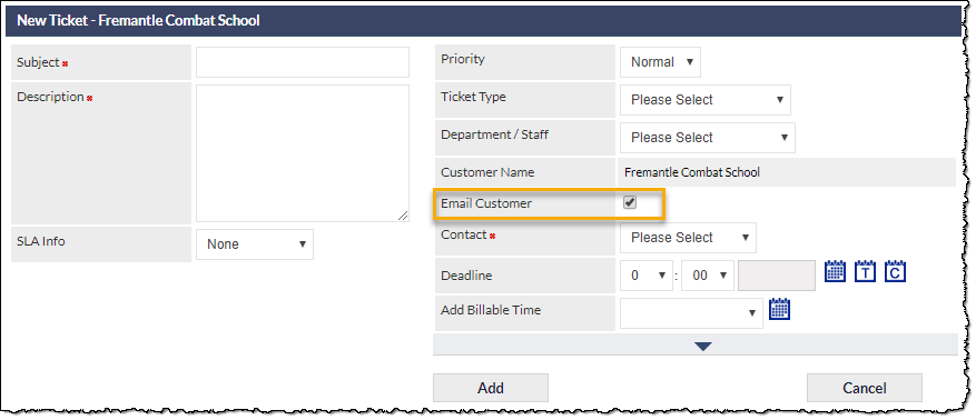 The CommTrak user can tick or untick this option, as required, at the time the ticket is being created.