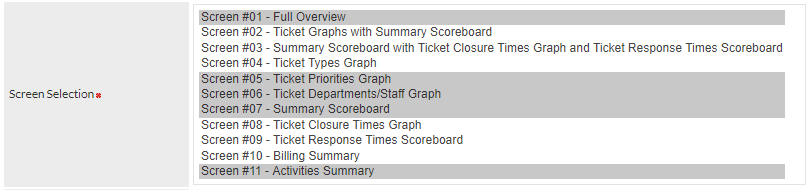 Select the screens to be displayed in the Standalone Dashboard; multiple screens can be selected by clicking the screen names in conjunction with the Shift and / or Ctrl keyboard keys.