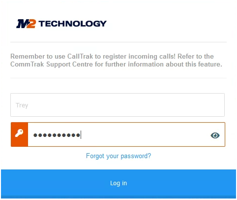 If you have forgotten your password, you can reset it by clicking the Forgot your password? link, which is displayed below the password field on the CommTrak login screen:
