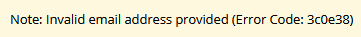 If the provided email address is not recognised, the following message will be displayed at the top of the screen: