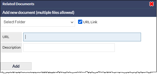 In addition to uploading and relating documents, it is also possible to relate a URL (a clickable web link). Once a URL has been related, it is treated in the same manner as a document (i.e. the item can be clicked, unrelated, deleted, renamed).