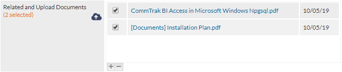 The Related and Upload Documents field can be expanded or collapsed by pressing the + or - button (visible in the above image).