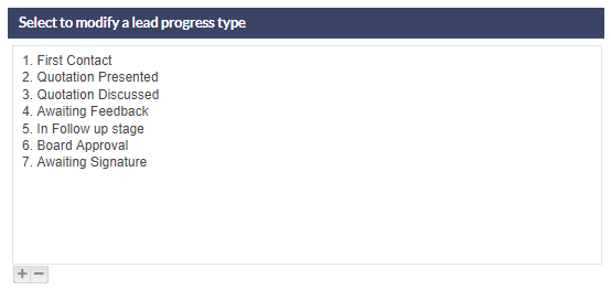 - Select a Lead Progress Type from the list displayed at the top of the settings screen