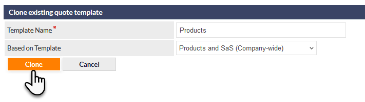Any quote template can be cloned. This feature is very useful if you either need to create a new template based on an existing one, or if you want to experiment with a new template design without breaking the existing template: