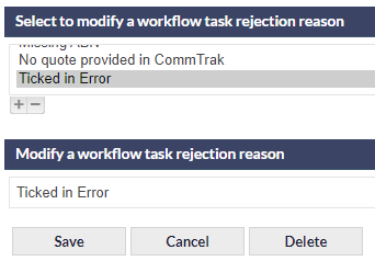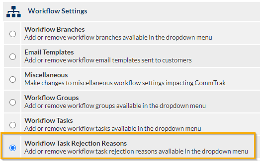 Workflow Task Rejection Reasons (Settings)