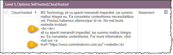 With a minimal knowledge of HTML, the person who initially creates the Data Sheet Template in CommTrak, can include any HTML tag to format the statement text.