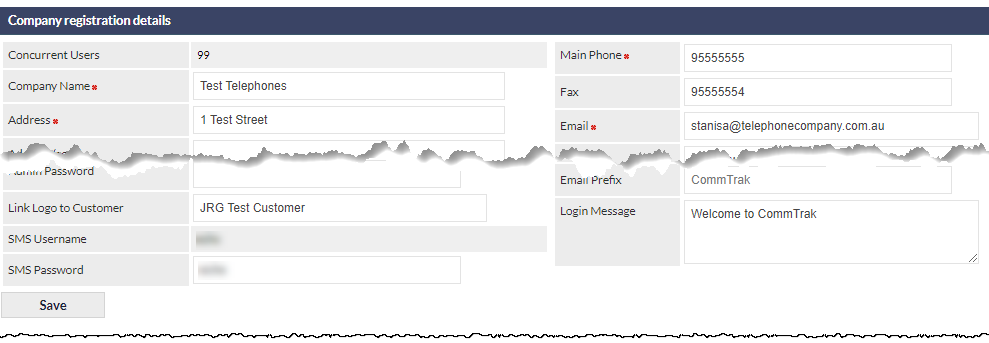 The passwords in both CommTrak and the SMS web portal must be identical, otherwise CommTrak's SMS features will not function.