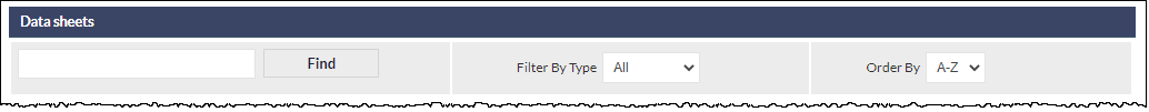 The filtering and sorting options are displayed at the top of the Data sheets section: