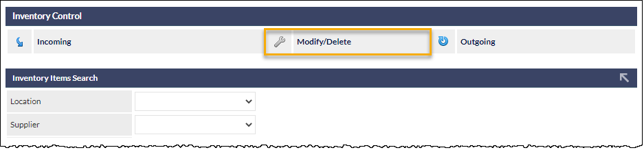 To access this Inventory screen, select Inventory in the main CommTrak menu, and click the Modify/Delete option at the top of the Inventory screen.