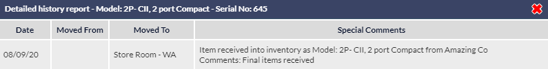 Clicking on the Description field link opens the Detailed history report pop-up window: