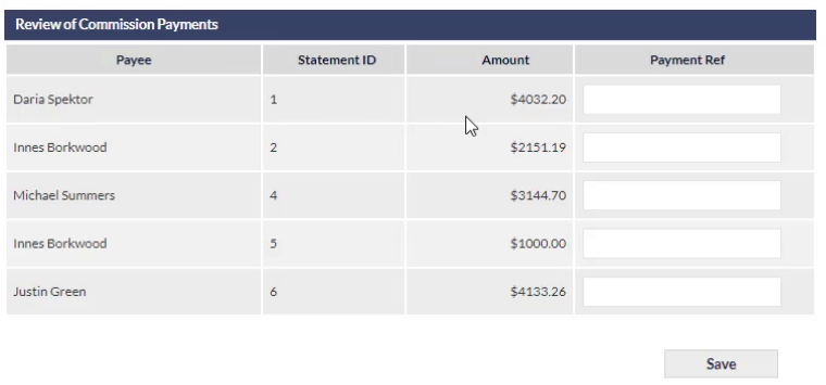 This feature is used for confirming commission payments to staff, when commissions are paid per product sold.