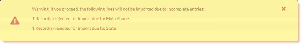 If any columns have been removed or added (compared to the example template), ensure the correct fields labels are selected before proceeding, or cancel the import and edit the CSV file accordingly.