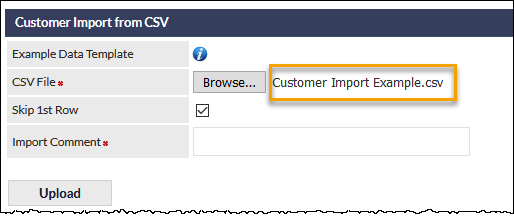 Enter a descriptive comment for this import. The comment will be displayed in the Previous Uploads list.