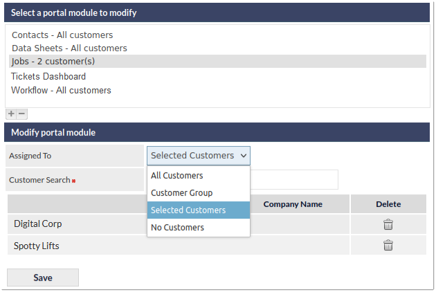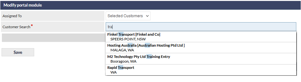 The selected customer is added to the list of customers that will be able to view the module in the portal: