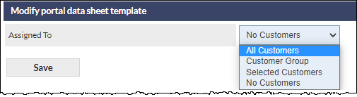 In addition to being able to allocate a Data Sheet Template to one or more Selected Customers or a Customer Group, it can now be allocated to All Customers, and the method of allocating to No Customers has been simplified: