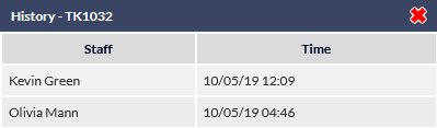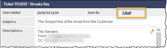 When clicked, a pop-up window is displayed listing the name of each staff member who has viewed the Ticket, and the time and date on which they first viewed it: