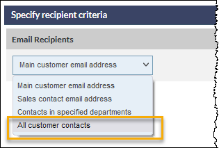 All customer contacts has been added to the Email Recipients option in the Email Marketing module: