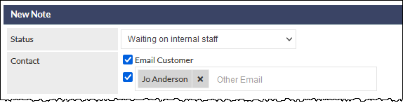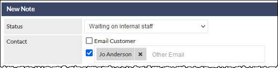 When adding a Note to a Ticket, in addition to being added to the All Notes section within the Ticket, a note can be emailed to one or more recipients, including: