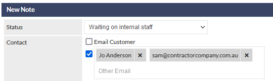 Example 4: Jo Anderson and the external contractor have been specified in the Other Email field