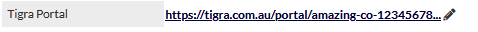 The previous image shows a custom URL field with the field label Tigra Portal, and the clickable URL that has been entered and saved in the custom field.