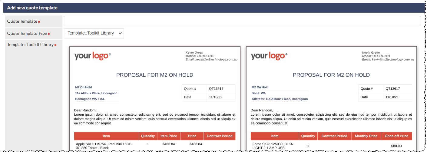 A Template Toolkit Library option has been added to the Quote Template Types available when creating a new Quote Template (Settings > Leads Settings > Quote Templates):