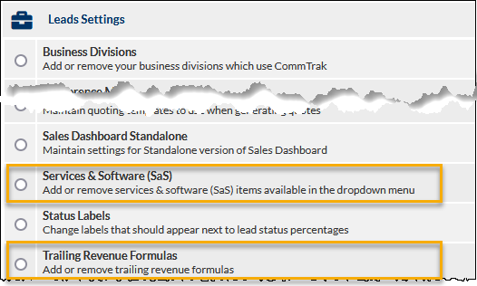 - SaS settings: Leads Services & Software (SaS) (Settings)