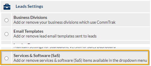 Business Divisions are configured in Settings > Leads Settings > Business Divisions.