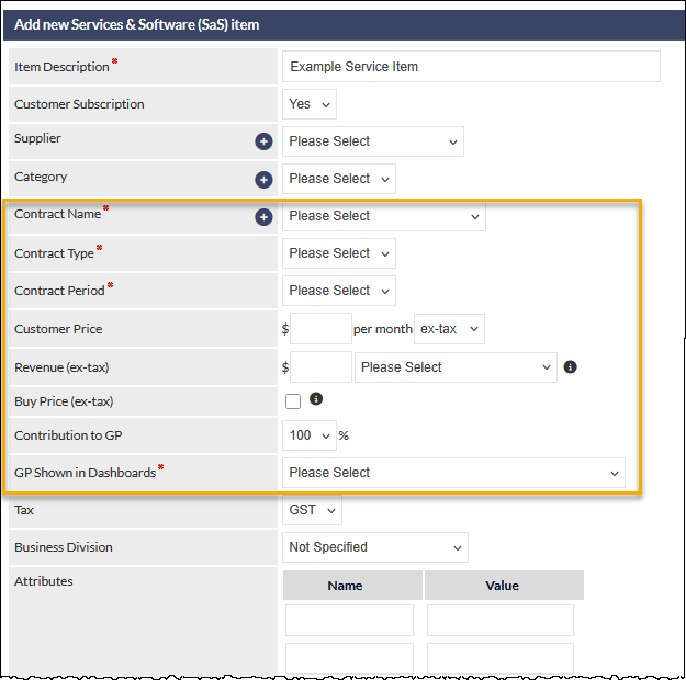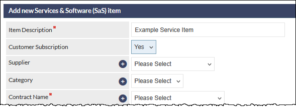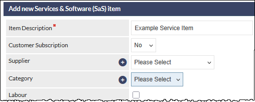 In the Add new Services & Software (SaS) item section, enter the required information into the available fields: