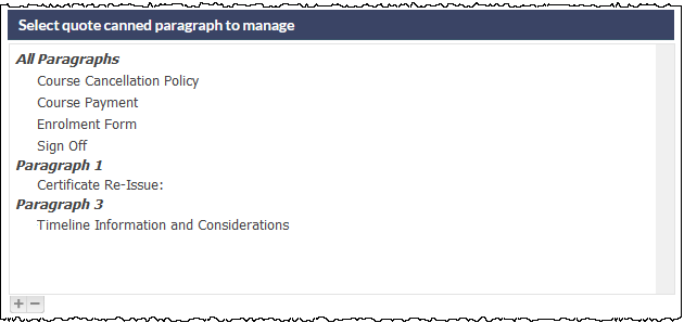 - Select a Quote Canned Paragraph from the list displayed at the top of the settings screen