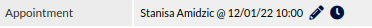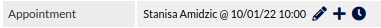When the appointment date displayed in the Appointment field is historical (i.e. it is a past appointment), the field is displayed as shown: