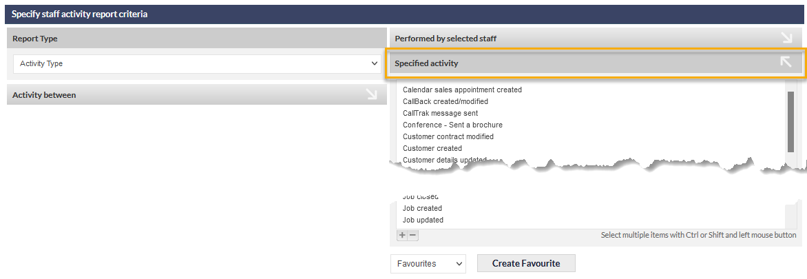 To view the complete list of logged activities, click the Specified activity criterion heading in the Staff Activity Report:
