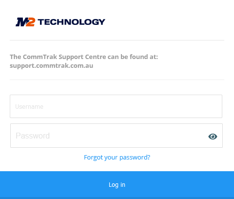 - Go to your organisation's CommTrak URL, which will have been provided to you by your CommTrak Administrator. Your CommTrak URL will look something like: yourorganisation.commtrak.com.au