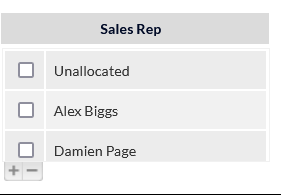 The topmost option in this filter is always Unallocated which, when selected, will list active Projects that do not have a Sales Rep assigned.