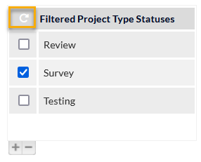 The Project Statuses filter can be reset by pressing the reset icon in the filter header (highlighted in the following image):