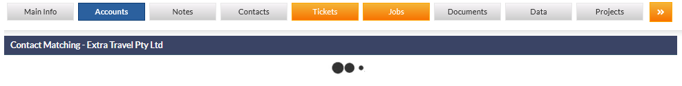 If accounts synchronisation has not occurred since matching, there may be a delay of a few seconds, as CommTrak synchronises with the accounts service. Whilst the synchronisation is occurring, pulsing dots will be displayed: